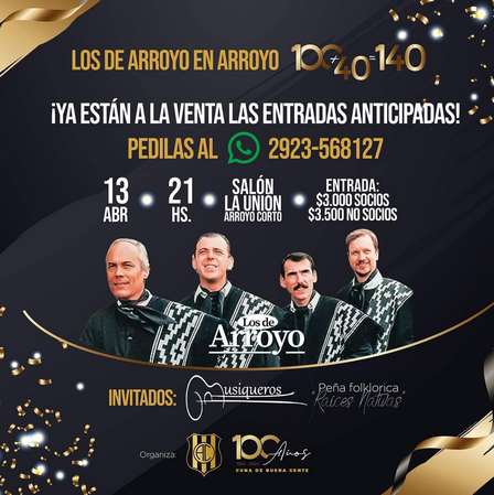 Por los 40 años de Los de Arroyo, los 100 del Club Deportivo Arroyocortense, y los 140 años de la localidad, aún hay entradas para los shows musicales en el Salón La Unión.