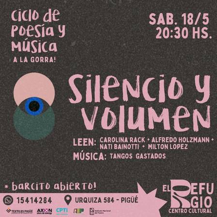 Uno de los organizadores de la propuesta del fin de semana expresó “en El Refugio, el próximo sábado, 18 de mayo, vamos a estar produciendo una nueva noche de poesía en un ciclo que se llama Silencio y Volumen”.