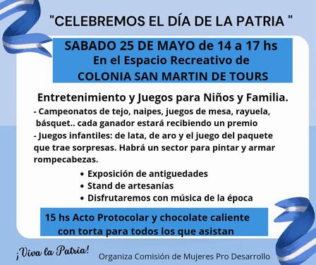 Celebrarán el 25 de Mayo en Colonia San Martín de Tours