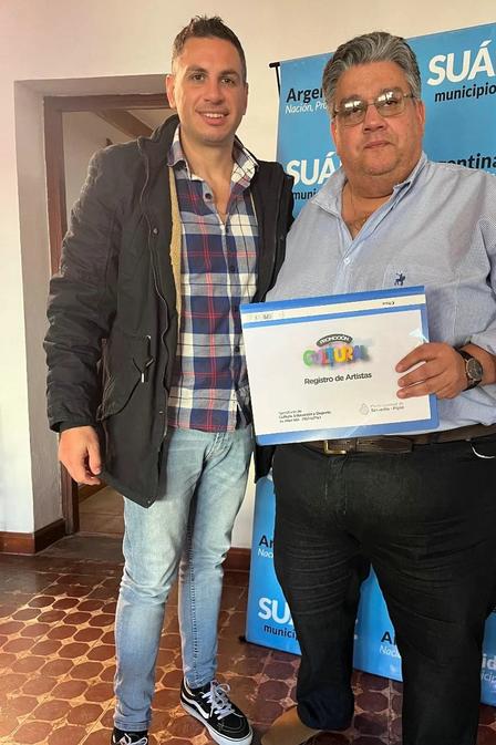 Jeremías Serrano estuvo con Marcelo Castorina para acercarle el Registro de Trabajadores de la Cultura del Partido de Saavedra.