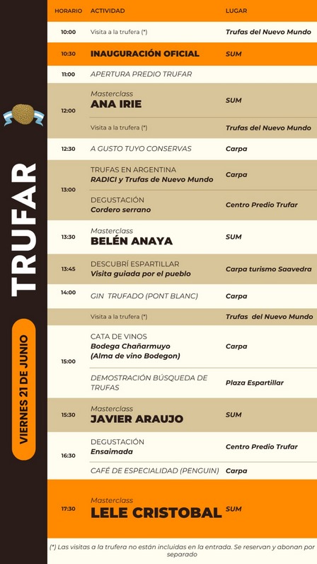 Para el viernes ya confirmaron la grilla de actividades de TRUFAR 2024
