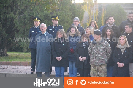Luego de las 8.30 horas se produjo el izamiento del pabellón nacional, hubo palabras de la Presidente del HCD Griselda Cledou, se entonaron las estrofas del himno nacional argentina, y la Banda Militar Cura Malal interpretó canciones patrias.