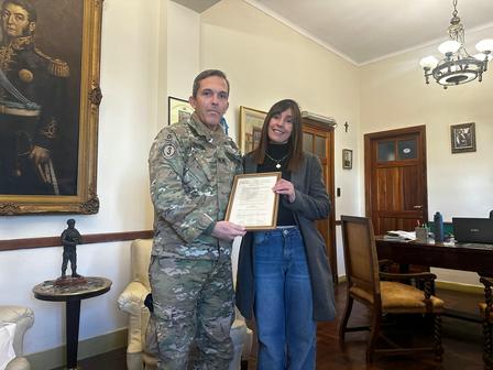Eliana Frutos se reunió con el Teniente Coronel Matías López Iñigo en sus oficinas de la Guarnición Militar Pigüé.