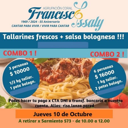 Una venta de tallarines frescos ya realiza la Agrupación Coral Francisco Issaly