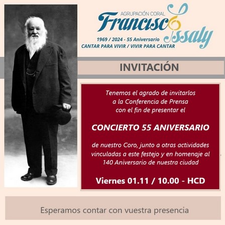 Habrá conferencia de prensa por el Concierto 55º Aniversario del Coro Francisco Issaly