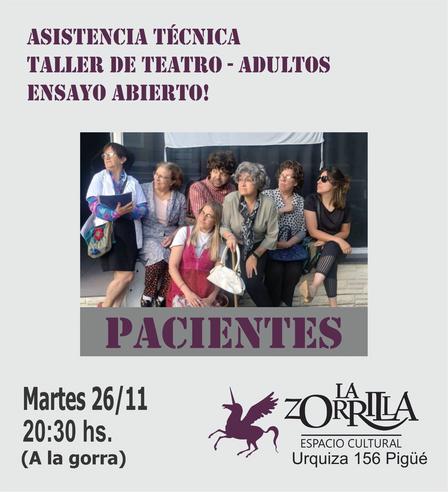 La Asistencia Técnica Municipal a cargo de la Profesora Vanesa Dentel invita a presenciar su muestra anual que consistirá en un ensayo abierto, de una parte de la obra ‘Pacientes’, que estará estrenándose en los primeros meses de 2025.