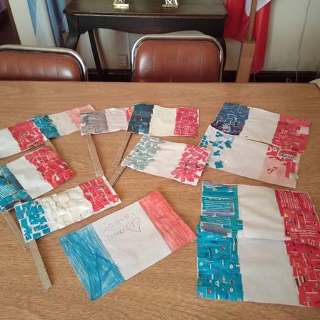 En el marco de los festejos del 140° Aniversario de Pigüé, la Alianza Francesa Pigüé invitó a los chicos de las escuelas primarias de la ciudad a confeccionar banderitas de Francia aportando toda su creatividad.