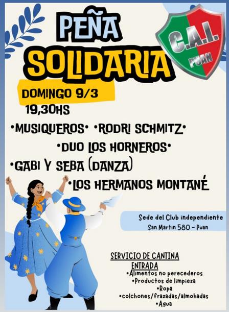 Artistas del distrito, y la zona, estarán en Puan en una Peña Solidaria