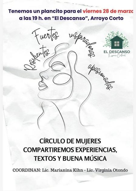En Avellaneda 150 de Arroyo Corto El Descanso programa, para el viernes, a las 19.00 horas, un 'Círculo de Mujeres'.