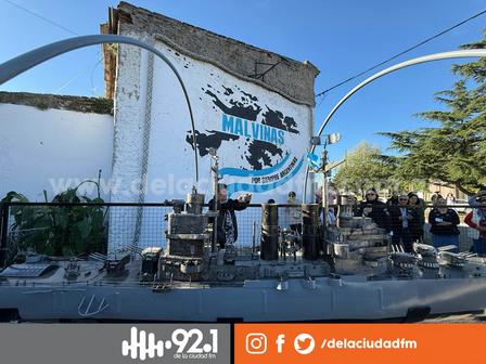 En el acto que tiene lugar en la Plazoleta Malvinas Argentinas se llevó a cabo la presentación de la obra de arte en homenaje al Crucero ARA General Belgrano que fue gestada en los talleres de la Unidad Penitenciaria Número 19 de la localidad.