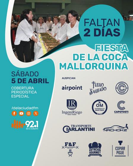 Con el desfile institucional, la Fiesta de la Coca Mallorquina, y los distintos atractivos anunciados para el sábado el equipo periodístico de FM de la Ciudad tendrá una transmisión ese día.
