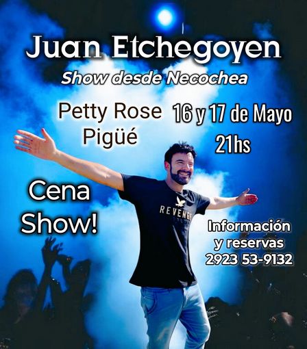 En el predio del Tenis Club Pigüé, al interior del espacio gastronómico Petty Rose, ubicado en Casella 550, estará Juan Etchegoyen.