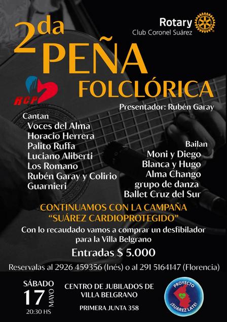 En la Peña Folclórica que impulsa el Rotary Club de Coronel Suárez, mañana, sábado, 17 de mayo, a las 20.30 horas, los bailarines pigüenses formarán parte de la grilla artística.