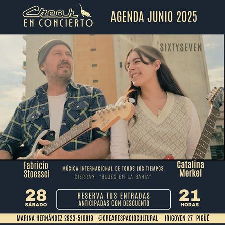 El show de Catalina Merkel y Fabricio Stoessel arribará a CREAR para abrir una noche en la que también se presentarán los integrantes de Blues en la Bahía.