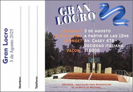 El día 3 de agosto, a partir de las 12.00 horas, en Avenida Eduardo Casey 476 de Pigüé, se llevará a cabo un locro, por un valor de 16.000 pesos.