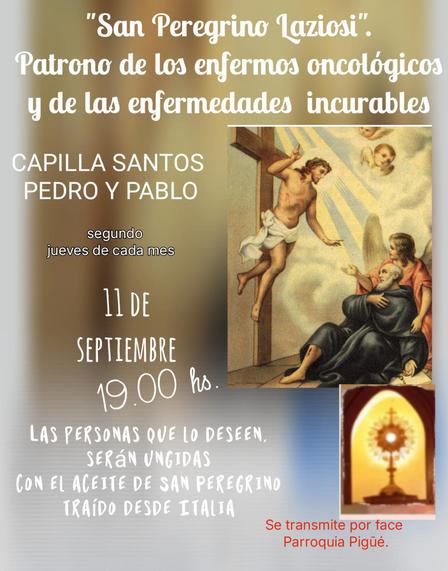Hoy, jueves, 11 de septiembre de 2025, desde las 19:00 horas, en la Capilla Santos Pedro y Pablo del Barrio Juan Murguía de Pigüé.