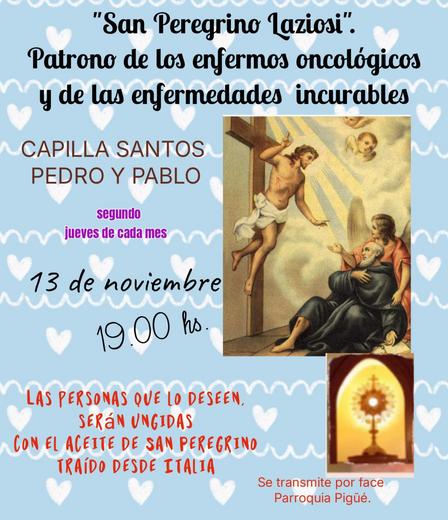 Invitan a la población a sumarse a la ceremonia especial donde se impondrá el aceite de San Peregrino, traído de Italia, a quienes lo deseen.