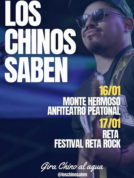 El día 16 de enero próximo se presentarán en el Anfiteatro de la Peatonal de Monte Hermoso, en horas de la noche, generando una participación con su gira ‘Chinos al agua’.
