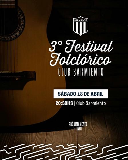 Club Sarmiento ya organiza el Tercer Festival Folclórico con música en vivo, servicio de cantina, y el próximo anuncio de venta anticipada de tarjetas.