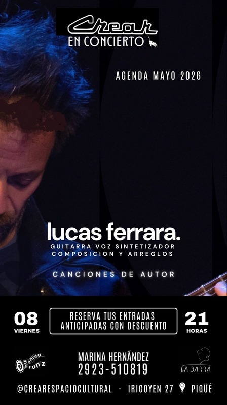 Lucas Ferrara se presentará en formato solo set combinando canción de autor con raíz folklórica, espíritu tanguero, e incorporando texturas electrónicas