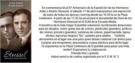 Conmemorando el 87º Aniversario de la Expedición de los Hermanos Stoessel el sábado 11 de abril se hará una exposición de vehículos de todas las épocas y tunning.