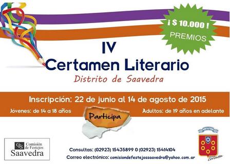 Inscriben, desde hace unos días, y hasta el 14 de agosto, para el certamen literario del Distrito de Saavedra.