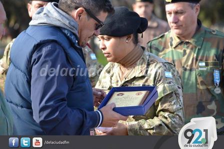 Integrantes de uno de los Comandos de Veteranos de Guerra hicieron entrega al RIMEC 3 de una placa recordatoria de la Guerra de Malvinas.
