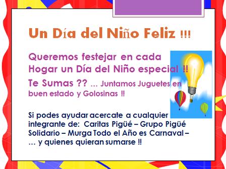 En el transcurso de estos días se está impulsando la búsqueda de juguetes, en buen estado, y golosinas, para ser entregados el Día del Niño.