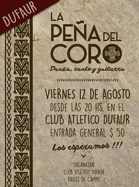 En el Club Atlético Dufaur, el Coro Francisco Issaly, y Raíces de Campo, han organizado esta propuesta de peña libre con canciones, bailes, y recitados.