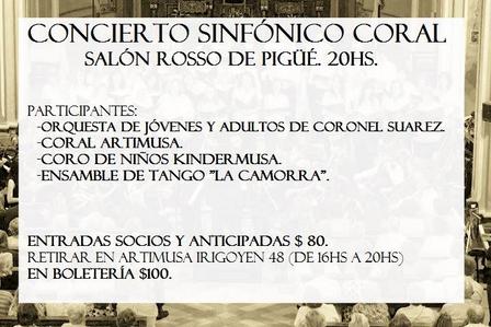 Se hará, el sábado 27 de agosto, a las 20.00 horas, el Concierto Sinfónico Coral en el Salón Rosso de Pigüé.