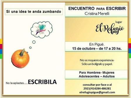 El Encuentro para Escribir con Cristina Merelli se hará en El Refugio, el 15 de octubre, desde las 17.00 horas.