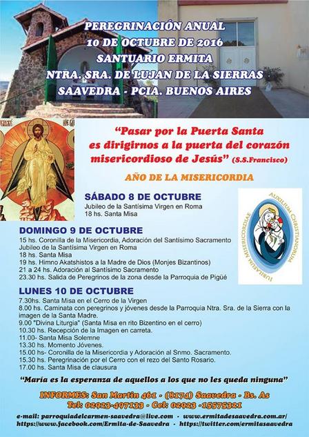 El sábado 8 de octubre comenzarán las actividades previas a la próxima Peregrinación a la Ermita Nuestra Señora de Luján de las Sierras.