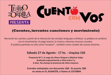 Esta integrante de la Agrupación Teatral De La Zorrilla explicó “en este caso del sábado realmente lo que vamos a hacer es jugar con la palabra. Más allá del cuento que se va a narrar también va a haber juegos de palabras relacionadas”.