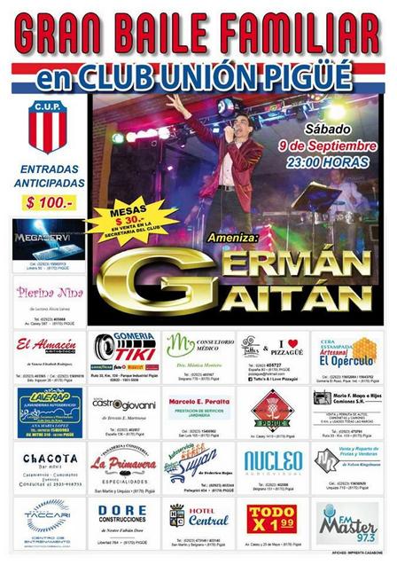 El sábado 9 de septiembre, desde las 23.00 horas, tendrá lugar un baile familiar con la presencia de Germán Gaitán.