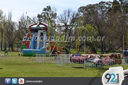En el predio del Parque Municipal han instalado ya varios juegos orientados a los chicos para el fin de semana.