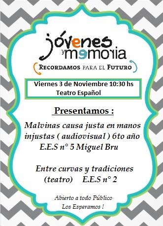 El audiovisual 'Malvinas causa justa en manos injustas' y la puesta en escena teatral 'Entre curvas y tradiciones' serán abiertos a todo público.