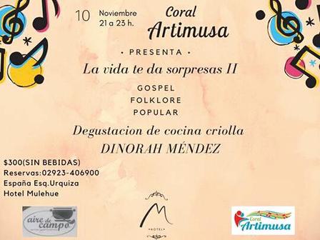 El Coral Artimusa dará un show, este viernes, por la noche, en el Hotel Mulehue.