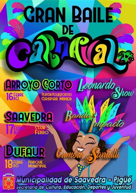 En Arroyo Corto, en Saavedra, y en Dufaur, los carnavales se harán los días 16, 17, y 18 de febrero respectivamente.