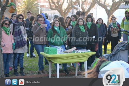 En FM de la Ciudad una de las manifestantes expresó “queremos compartir un boletín por esta lucha del aborto legal, seguro, y gratuito”.
