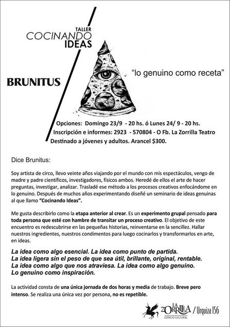 Para este taller titulado 'Cocinando ideas' la inscripción está abierta, orientada a jóvenes y adultos, con un arancel de 300 personas, a cargo de Brunitus.