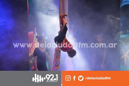 Chicas y chicos de todas las edades subieron al escenario de calle España para presentar sus aptitudes en gimnasia en tela.