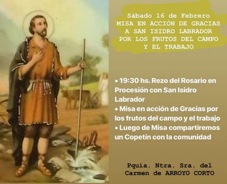En Arroyo Corto habrá actividades especiales por San Isidro Labrador