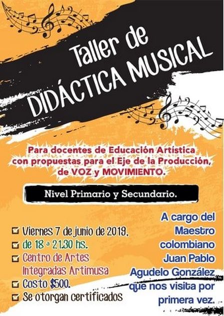 La capacitación se llevará a cabo, a cargo del Maestro de Colombia Juan Pablo Agudelo González, el viernes 7 de junio, en ARTIMUSA, a las 18.00 horas.