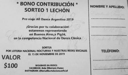 Para participar de una competencia, la de All Dance Argentina, MBD Estudio de Danzas vende este bono contribución.