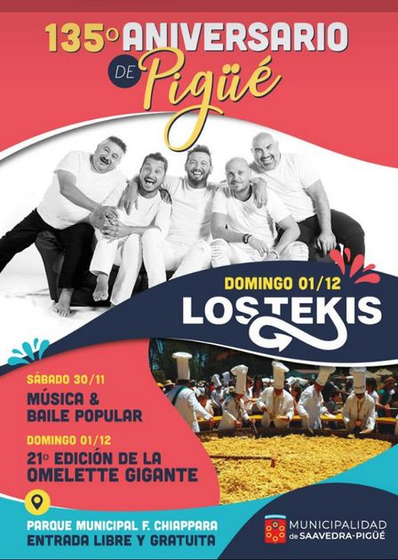 Confirmaron el show de Los Tekis para el nuevo aniversario de Pigüé