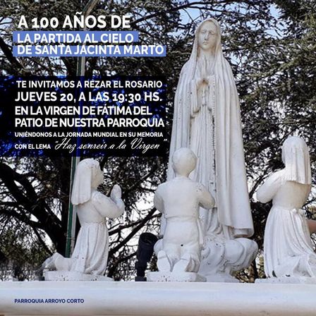 En el marco de una serie de acciones mundiales para celebrar el 100° Aniversario de la Partida al Cielo de Santa Jacinta Marto habrá un rezo especial.