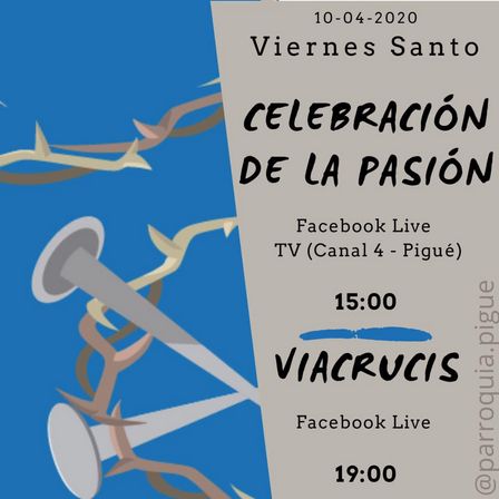 A partir de las 15.00 horas, en la cuenta de Facebook de Parroquia Pigüé, y en Canal 4 TV Pigüé, tendrá lugar una celebración especial por el Viernes Santo.