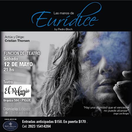 El actor Cristian Thorsen presentará nuevamente la obra Las Manos de Euridice.