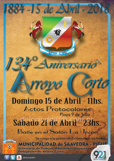 El domingo 15 de abril, desde las 11.00 horas, tendrá lugar la presentación de las actividades oficiales por el aniversario de Arroyo Corto.