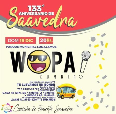 La entrada, para Wopa Cumbia, será gratuita, y habrá viajes, desde la localidad, a ese predio, que serán gratis cada 45 minutos.
